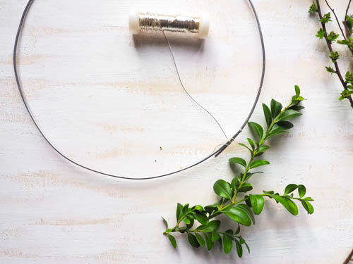 - Den dünnen Silberdraht zur Hand nehmen und die beiden Enden umwickeln und den Draht so zum Kranz schließen.
