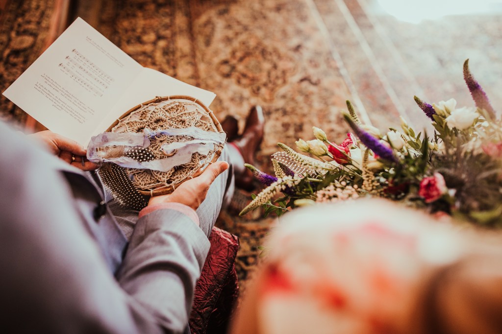 Vier Monate habe ich für die Umsetzung unserer Hochzeit gebraucht. Von der Materialrecherche bis hin zum Farb- und Dekokonzept. Das Malen, Kalligraphieren, Papierschöpfen, Das Reißen der Kanten der Einladung, das sieben Stunden Zeit in Anspruch nahm. 20 Traumfänger habe ich gehäkelt von 25 cm bis 40 cm Durchmesser mit unterschiedlich starken Garnen. Echte Handarbeit steckt hinter jedem einzelnen Produkt, das ich für unseren großen Tag kreiert habe.