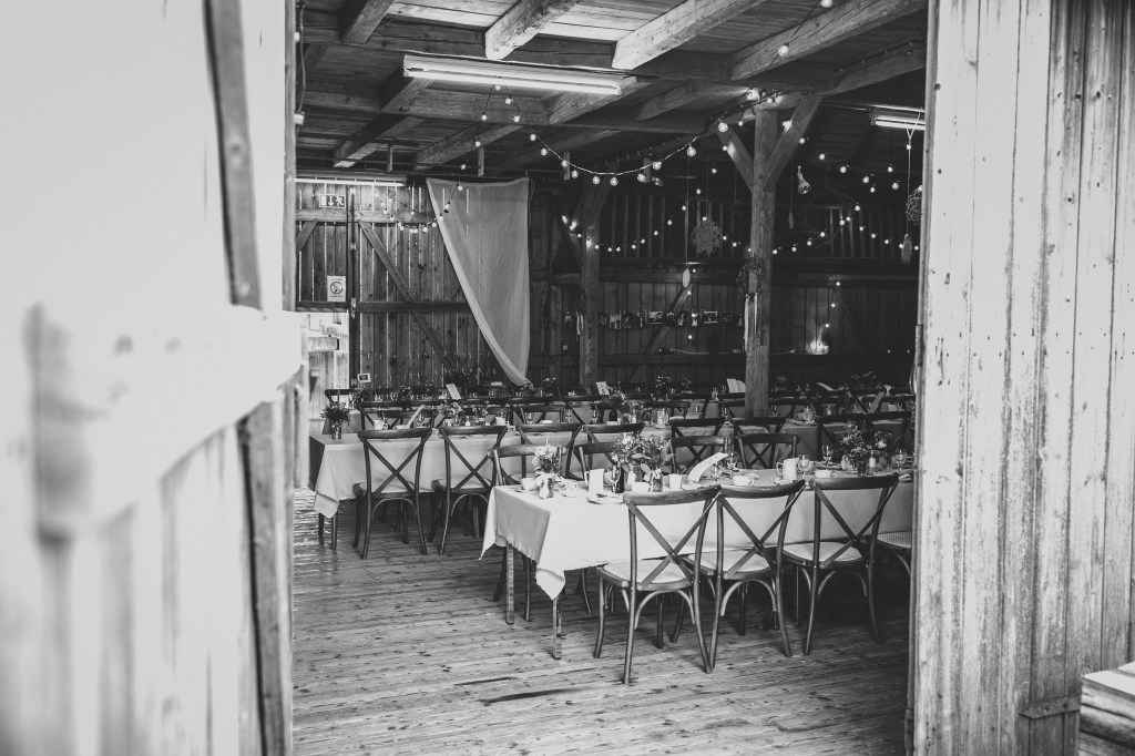 Die Wahl der Location fiel sehr schnell. In unserer Region gibt es wenige Plätze, die „nackig“ sind, wo man seinen Gedanken und Ideen freien Lauf lassen kann. Schnell war klar, es wird eine rustikale und vor allem leere Scheune. Wir lieben zwanglose Familienfeste, wo jeder so sein kann wie er ist ohne sich groß zu verstellen. Bei uns gibt es viele Kinder, einige Hunde und jede Menge Spaß, Lachen und Freudentränen.